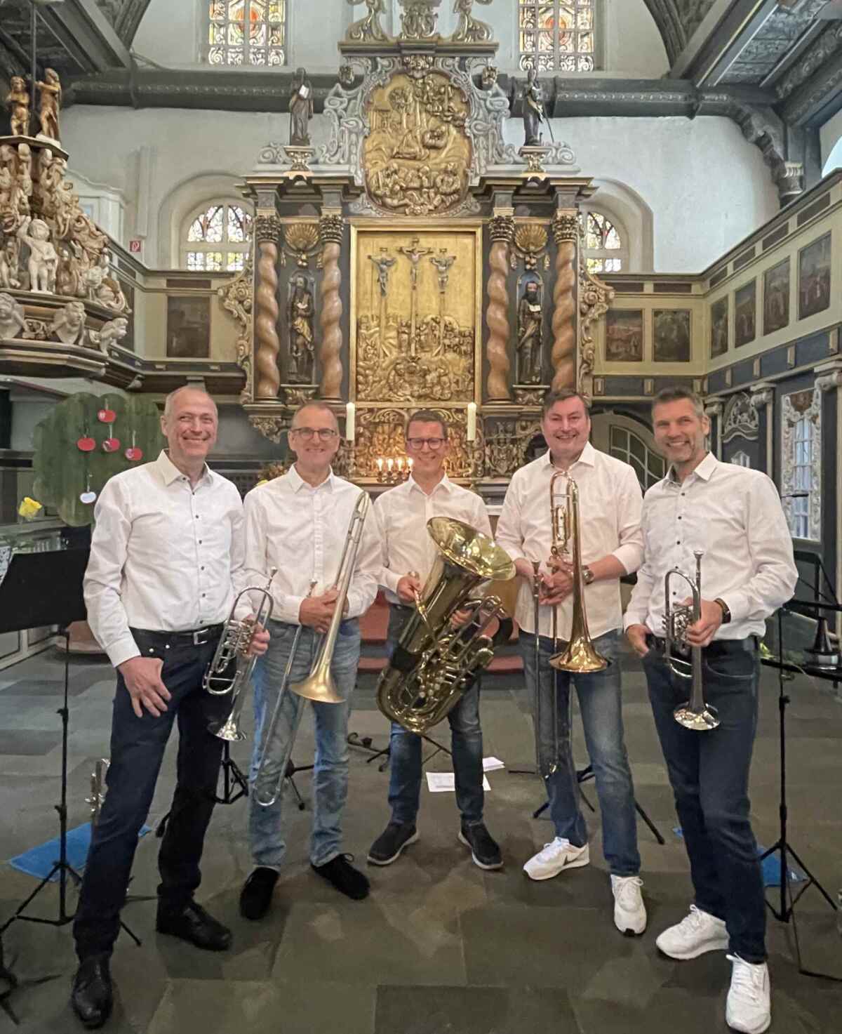 Das Ensemble, bestehend aus zwei Trompeten, zwei Posaunen und einer Tuba, präsentiert ein abwechslungsreiches Programm mit festlichen Klängen, die die Adventszeit erlebbar machen. Freuen Sie sich auf bekannte Weihnachtslieder, barocke Werke und stimmungsvolle Arrangements, die die einzigartige Klangvielfalt der Blechbläser zur Geltung bringen.