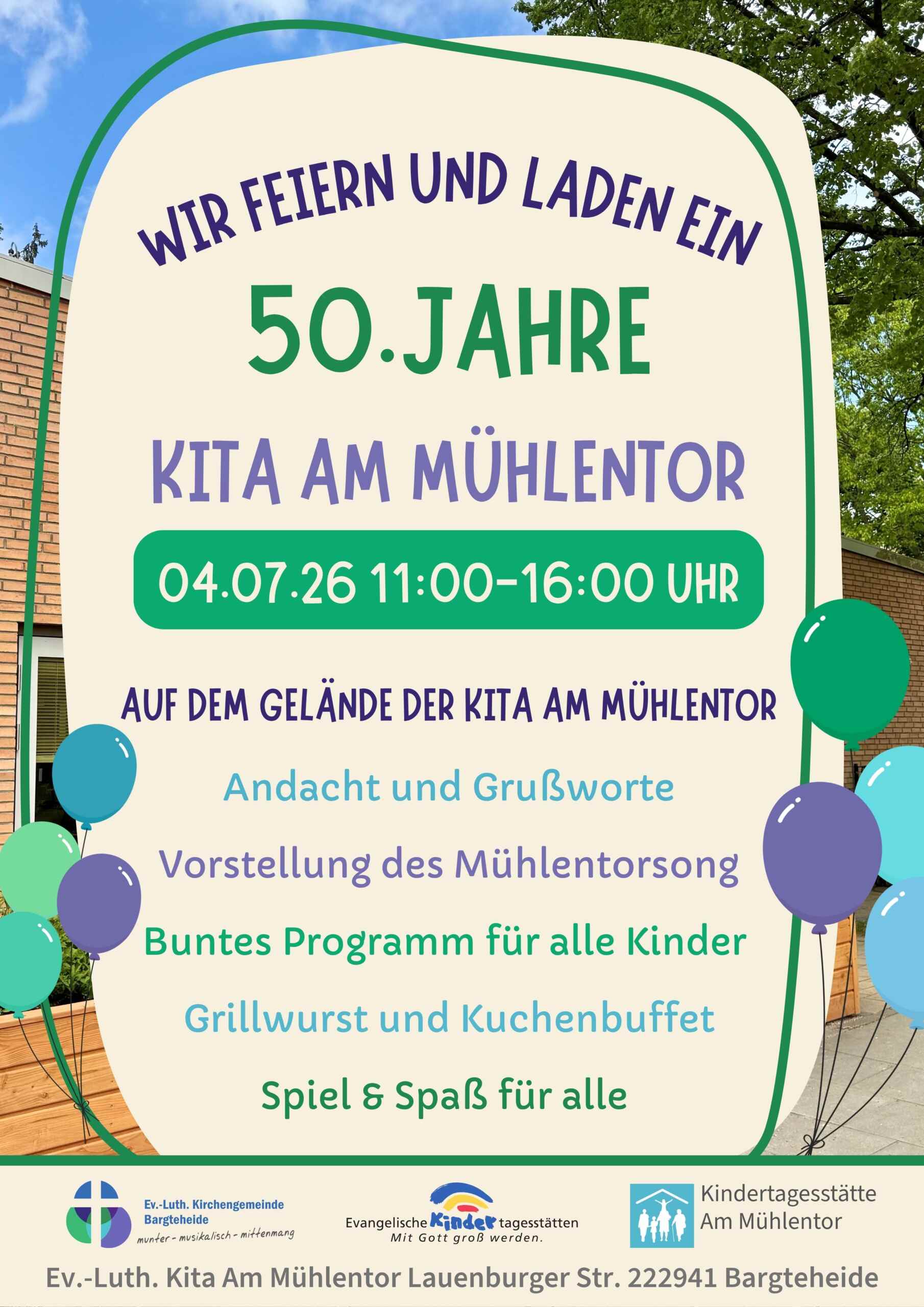 Kita "Am Mühlentor" Lauenburger Straße 2, BargteheideWir feiern 50 Jahre Kita "Am Mühlentor". Herzliche Einladung!